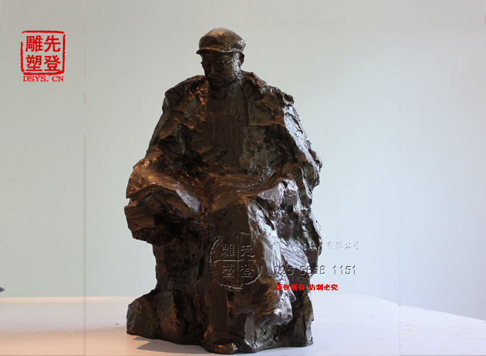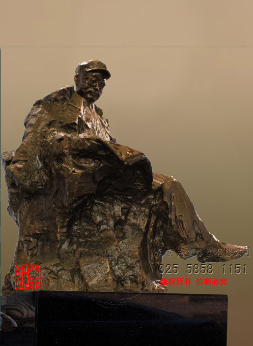這是一尊寫意的雕像,遠遠望去,從輪廓大致便可以看出這是一座劉伯承先生的坐像。先生安詳?shù)刈帜靡环輬蠹垼谝惶斓囊潦检o靜的讀著。他像一位為兒孫讀報的老人,如此安詳,慢慢地念著報紙的內(nèi)容,不時又有停頓,思索了一會,閉上眼,靜靜的思考,然后又堅定地點了點頭,仿佛已有所定斷。這也許不是一份普通的晨報,也許是從資料室中搜索出來的解放南京前地下工作者在當(dāng)時緊急情況下做出的報告,經(jīng)過解放南京戰(zhàn)爭的洗禮,已經(jīng)有些皺了。這是個百廢待興的歷史時刻,南京市的蔣軍殘余還沒有肅清,城市還沒有安定,生產(chǎn)建設(shè)沒有恢復(fù),人們的生活沒有正常,作為新中國南京市第一任市長,劉伯承先生要做的還很多。