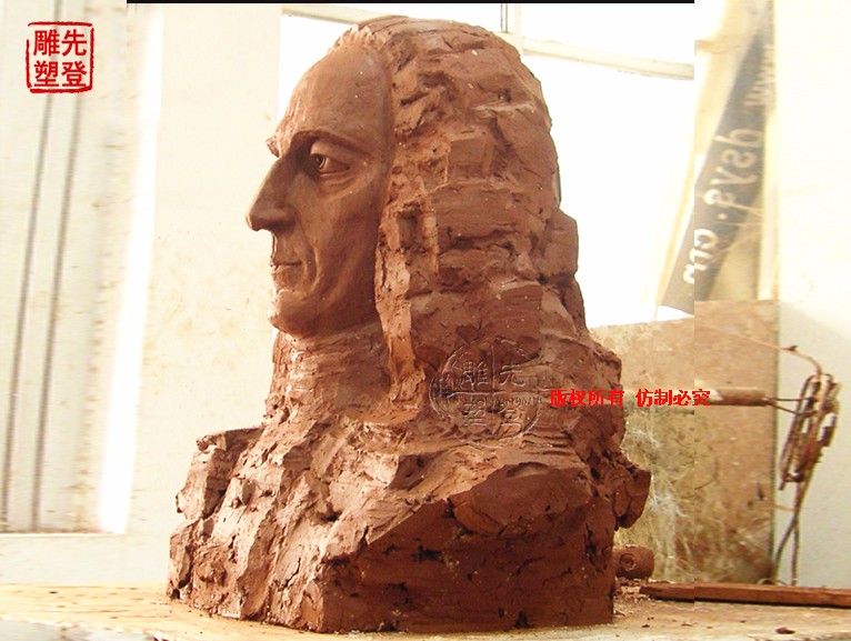 雕塑孟德斯鳩的塑造手法是激蕩的,以一名戰士般的豪情敘述,他的外在特征的跌宕起伏具有音樂的激昂的美,這美是悲哀的、激進的、迷茫的,凝聚著無數的備受壓迫的人們的彷徨之音,形體的山勢,在氣場上給人高不可攀的征服性,正是這巍然的外在形體,撞擊出更為悲壯的音律氛圍,悲劇性的色彩壯大了雕塑藝術的形式美,而雕塑在內容上潛入到孟德斯鳩思想的深處,發掘出內里的豪情萬丈,訴諸于手下鮮潔明靜的泥土,亦成了這“戰士”的身軀,這身軀猶如山體,利斧劈鑿而成,沒有美輪美奐的“日出東山”“鳥啾蟲鳴”,是一幅在備受欺凌的世態下生存著的人民的生活實景,是當時在封建主義和君主專制下的法國地圖,那是一卷地勢料峭、氣候惡劣,草木無以為生的光景,在這樣一個時代大背景下衍生出來的一位思想家,他的周身是粗狂的,未經雕琢的圖景,唯有鑲嵌在山巔的雙眼,看見了清平世界,在那里,在那雙眼里看見了人們所生存的世界風姿熠熠,笑語晏晏,他雙眼流盼,雕塑隨之靈透,流麗賦彩,粗狂下衍生的是藝術手法上的不著痕跡的幾經斟酌思釀。雕塑中看到的孟德斯鳩以筆為毫,將世界納入胸膛,有著于人的親和以及對腐朽的統治階級的反抗精神。他是詩人,有著詩人的氣魄與多情,含情與萬物,心生憐憫的情意,這無限的情意迫使他成為了一名持戟的戰士,英勇無畏的追逐著文明的盛世。千山競秀萬壑爭流不再是夢寐。