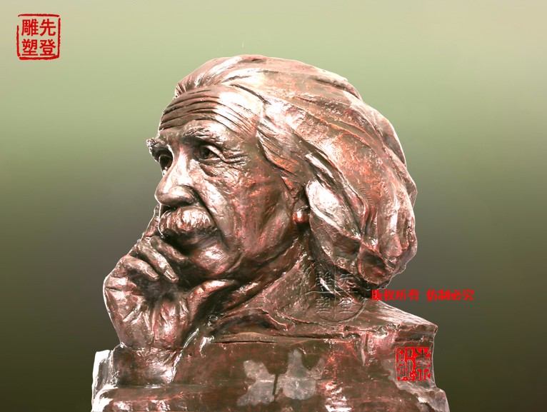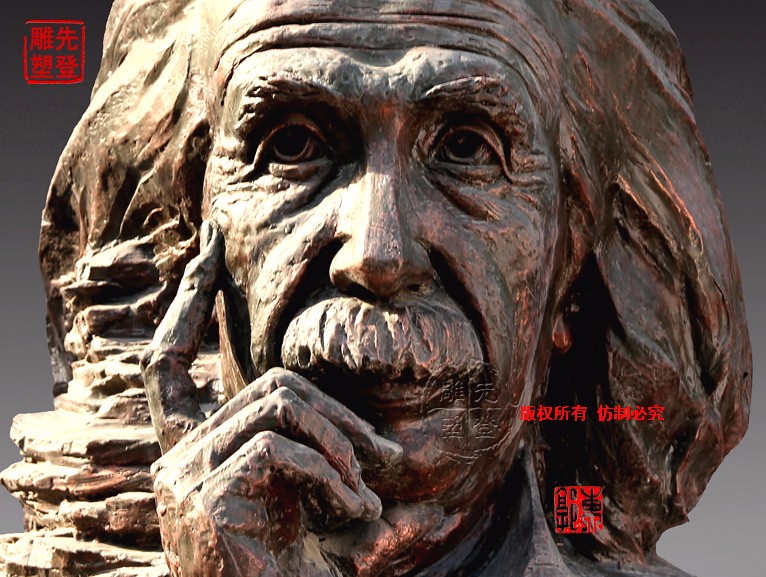 雕塑作品是雕塑家個人內心的情感和表達欲望情感的載體、宣揚精神層面的介質。愛因斯坦的雕塑塑造的是智慧與仁義的結合,他的人生在不斷探索、思考中感染著人類。藝術家索取的就是愛因斯坦散發出的人格魅力,他是世界的公民,他的愛建立在人道主義情懷之上,不屬于哪一個國度,藝術家無需精雕細琢,不是色彩的感覺,是內蘊情感的流露,猶如匕首刺向偽君子的面具,真實的面對生活,從事嚴謹的科學研究。那是什么樣的文化孕育出世紀的偉人,是什么樣的審美心理塑造出的永恒。